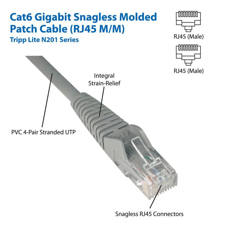 DESCRIPCIONCABLE ETHERNET (UTP) MOLDEADO SNAGLESS CAT6 GIGABIT (RJ45 M/M)