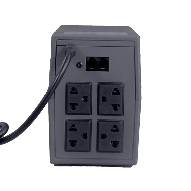 | SALIDA | TENSION NOMINAL | 220 / 230 / 240 VAC | | FACTOR DE POTENCIA | 0.57 | | FORMA DE ONDA | ONDA SINUSOIDAL MODIFICADA | | TOMAS DE SALIDA | UNIVERSALES: 04 | REGULACIÓN DE VOLTAJE (MODO LÍNEA) ± 15% REGULACIÓN DE VOLTAJE (MODO LÍNEA) ± 10% RANGO DE FRECUENCIA (MODO BATERÍA): 50/60 HZ ± 1HZ | |