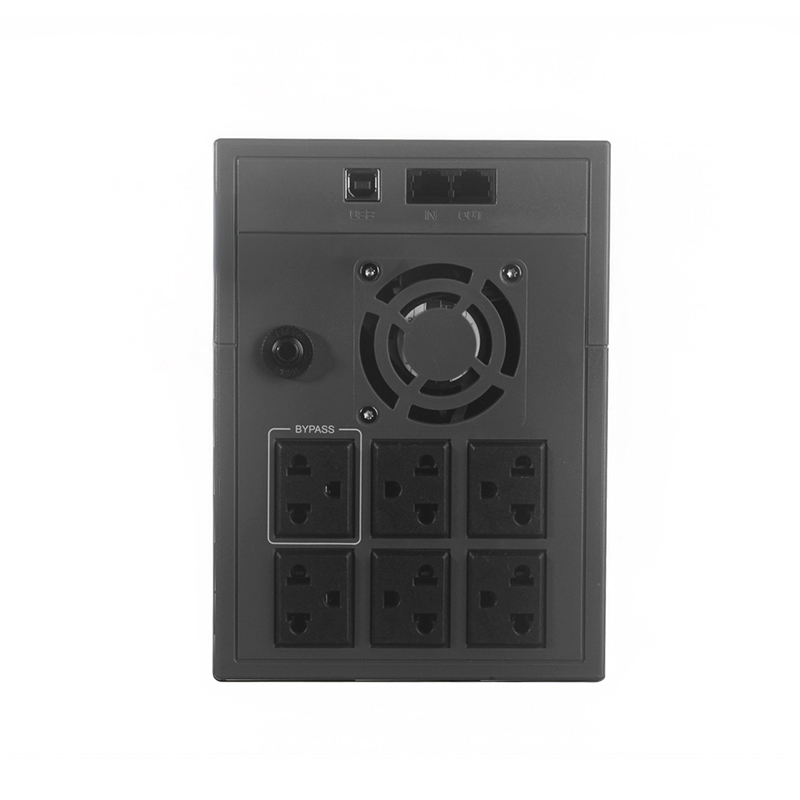 | SALIDA | TENSION NOMINAL | 220 / 230 / 240 VAC | | FACTOR DE POTENCIA | 0.6 | | FORMA DE ONDA | ONDA SINUSOIDAL MODIFICADA | | TOMAS DE SALIDA | UNIVERSALES: 06 | REGULACIÓN DE VOLTAJE (MODO LÍNEA) ± 15% REGULACIÓN DE VOLTAJE (MODO LÍNEA) ± 10% RANGO DE FRECUENCIA (MODO BATERÍA): 50/60 HZ ± 1HZ | |